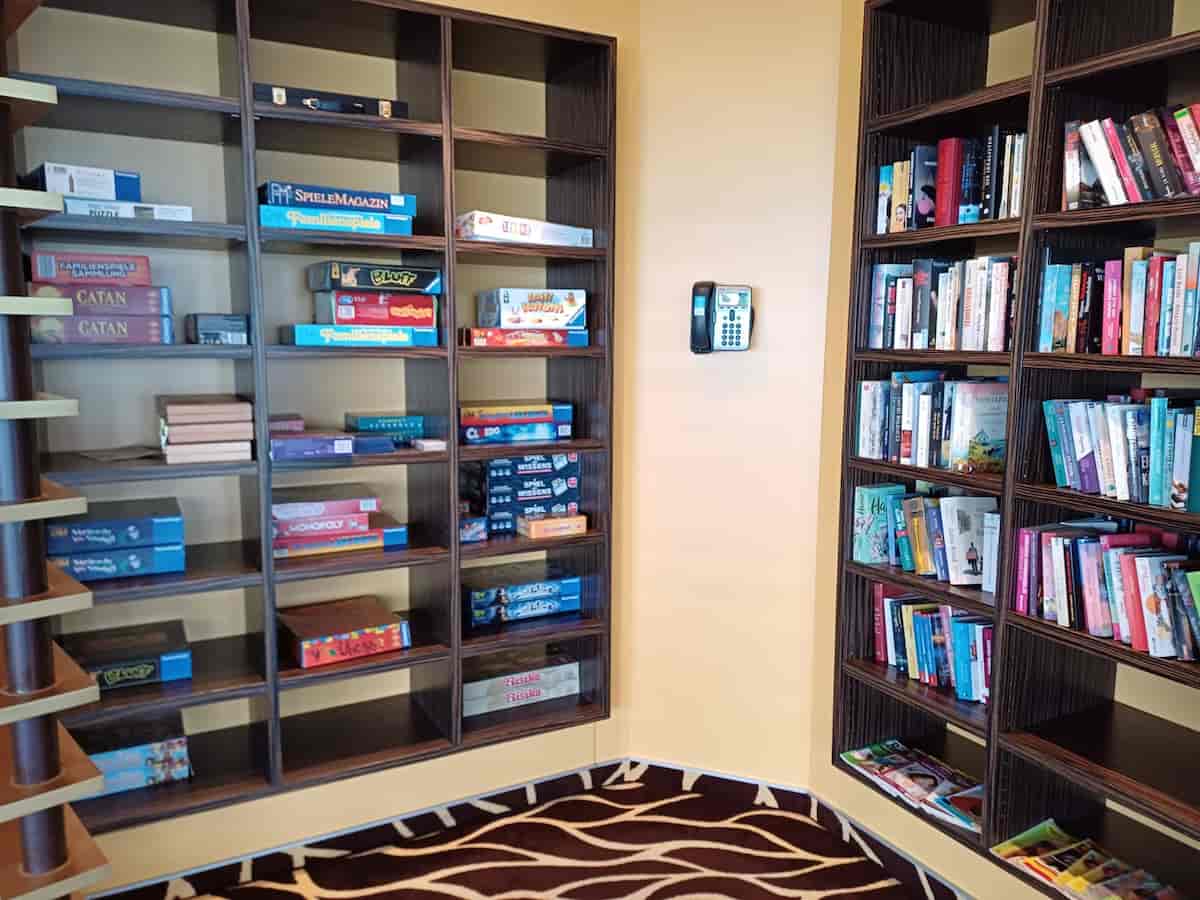 In der Bord-Bibliothek haben wir Skatkarten entdeckt und MauMau gespielt. Das war lustig, denn das war Ewigkeiten her, dass ich/wir das zum letzten Mal gespielt haben. Wir tranken zwei leckere alkoholfreie CockTails dazu und das Urlaubsreise-Feeling war wieder da.